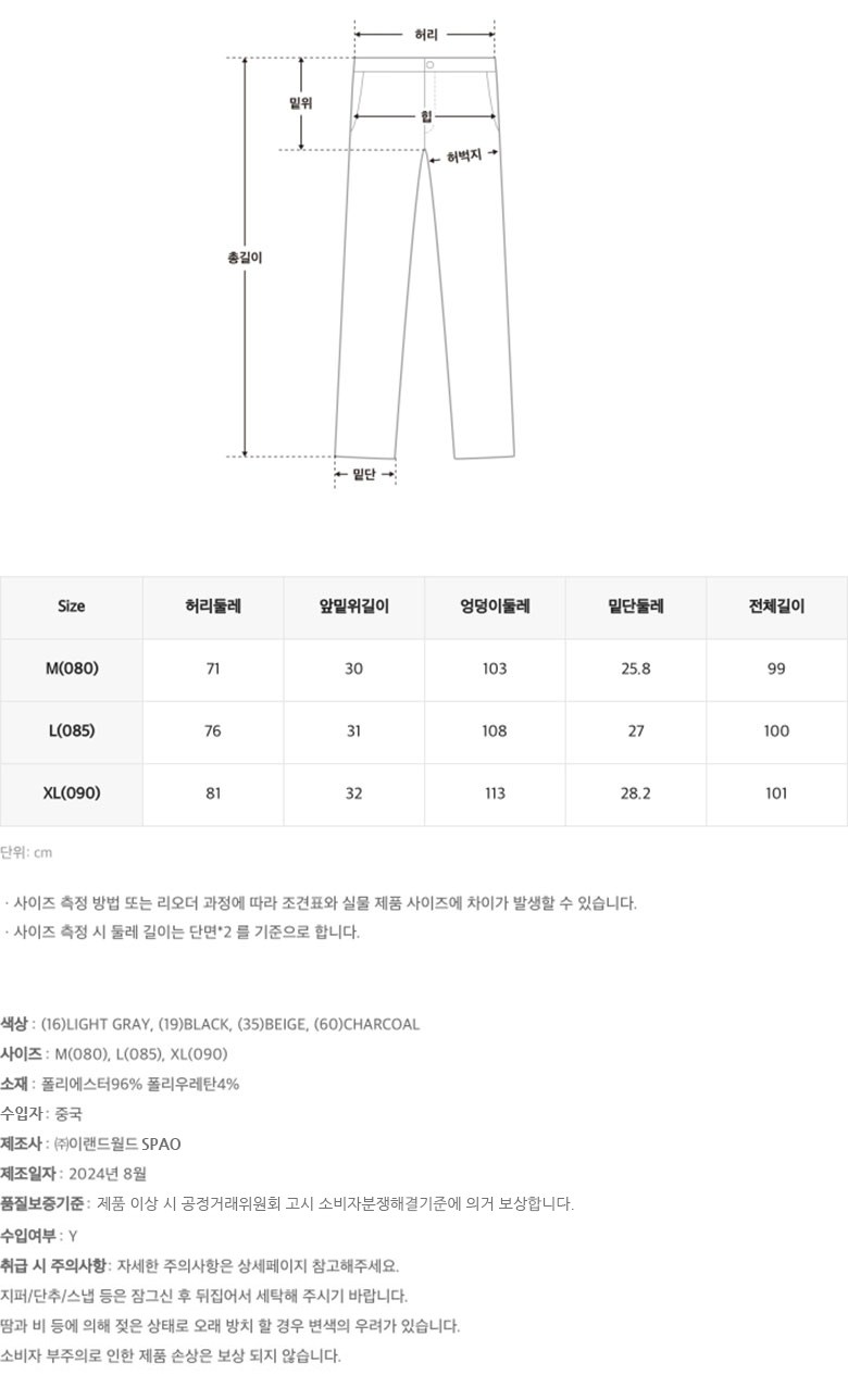 | 치수 | 컨텐츠 참조 | 제조자(수입자) | 업체미제공 / (주) 이랜드월드 SPAO |