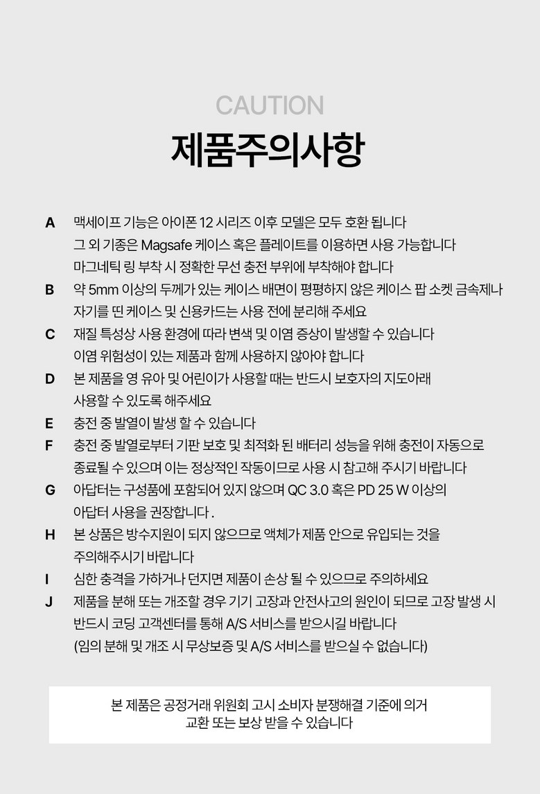 - ㆍ교환/반품에 관한 일반적인 사항은 판매자가 제시사항보다 관계법령이 우선합니다.