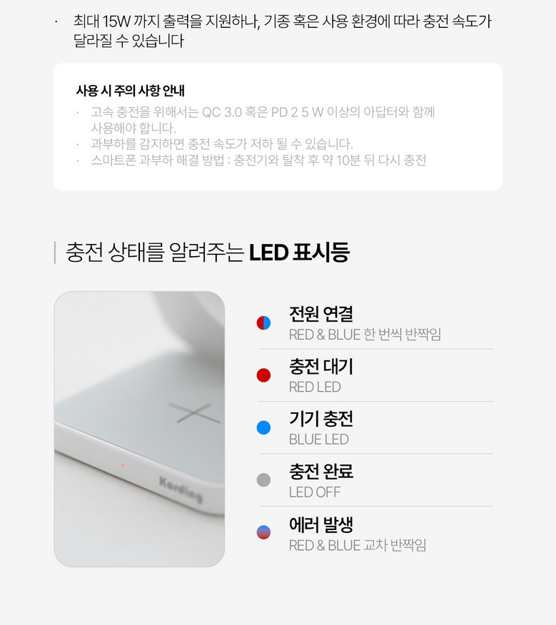 발열 및 충전 효율이 저하 될 수 있습니다.