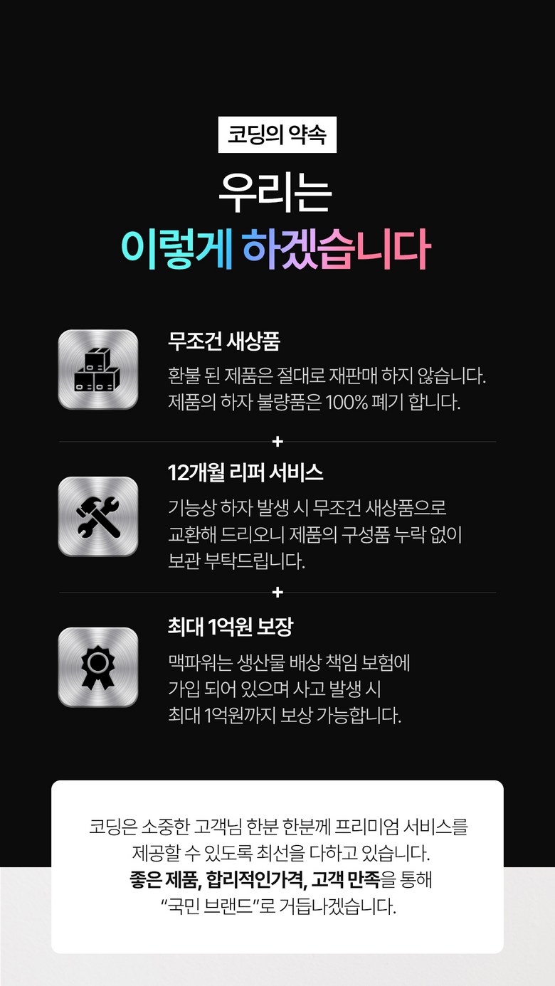 - ㆍ제조사의 사정 (신모델 출시 등) 및 부품 가격 변동 등에 의해 무료 교환/반품으로 요청하는 경우