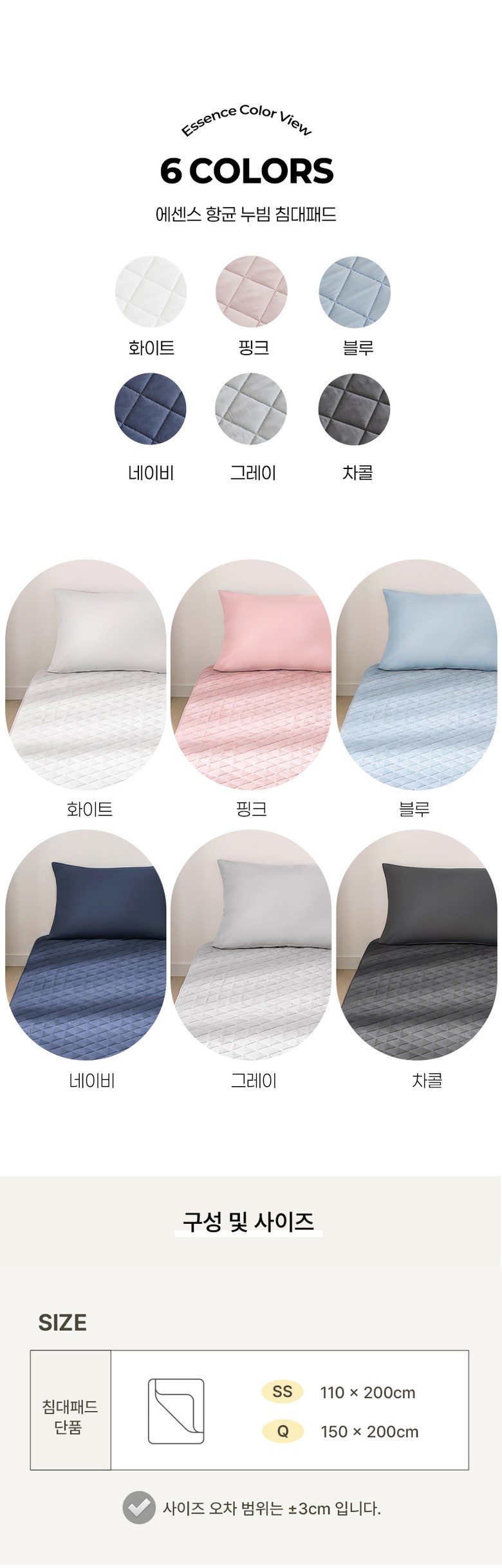 | 치수 | SS,Q (상세페이지 참조) | 제품구성 | 침대패드 1장 |