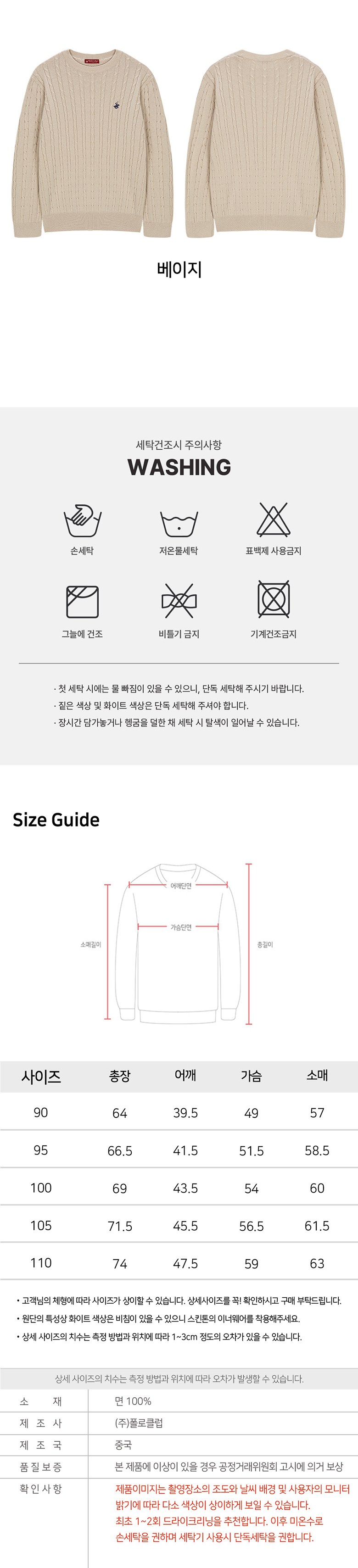 | 치수 | 컨텐츠참조 | 제조자(수입자) | 리뉴얼 전: (주)폴로클럽 , 리뉴얼 후: (주)폴로클럽/업체미제공 |
