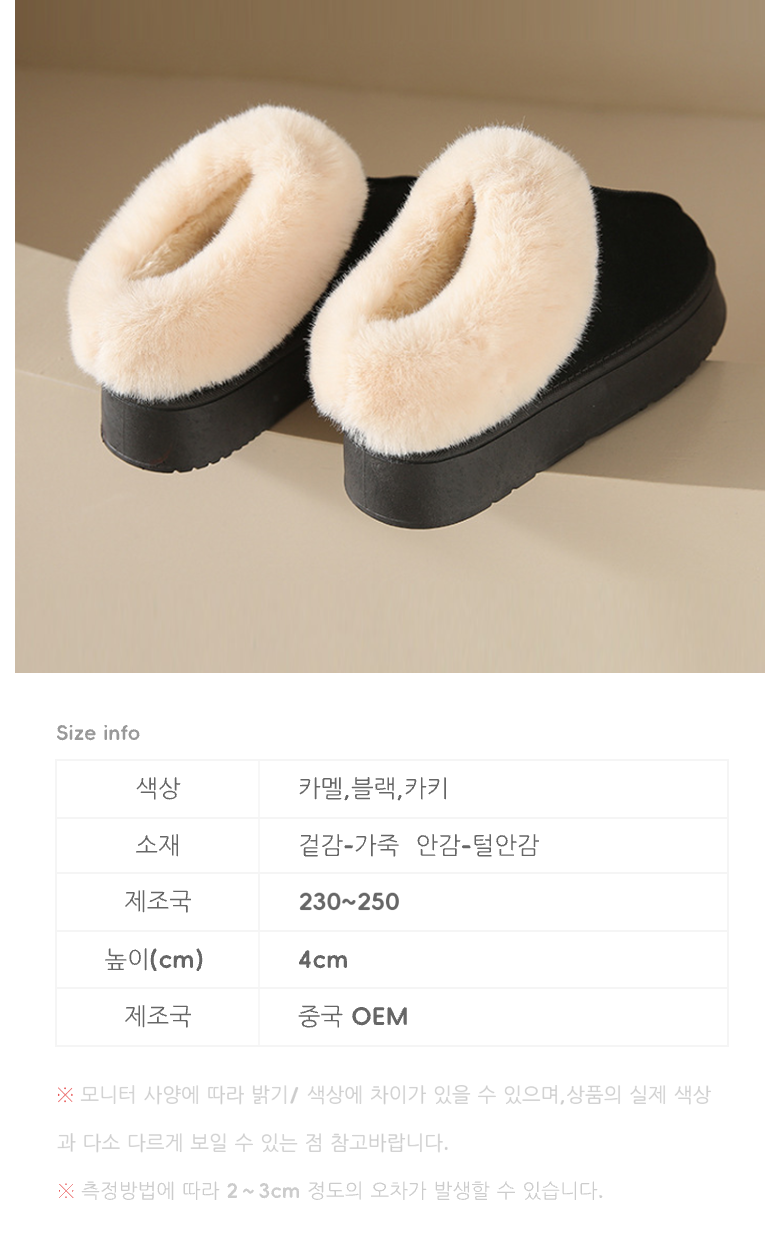 | 제품의 주소재(운동화인 경우에는 겉감,안감을 구분하여 표시) | 소재:인조 퍼 | 색상 | 상품 상세페이지 참조 |