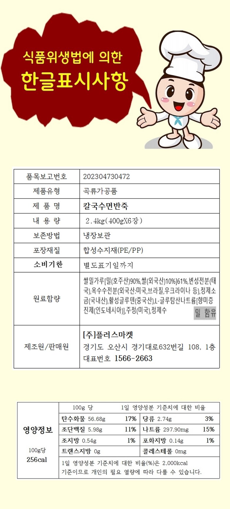 | 제품명 | 칼국수면반죽 | 식품의 유형 | 곡류가공품 |