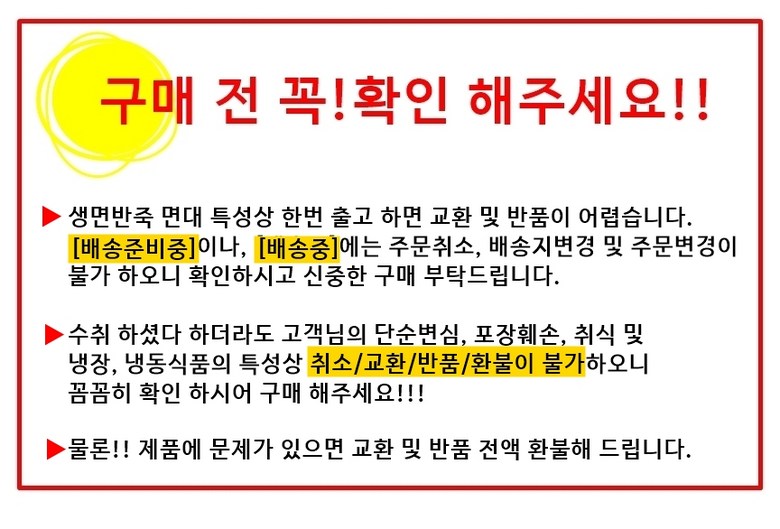 - ㆍ교환/반품에 관한 일반적인 사항은 판매자가 제시사항보다 관계법령이 우선합니다.