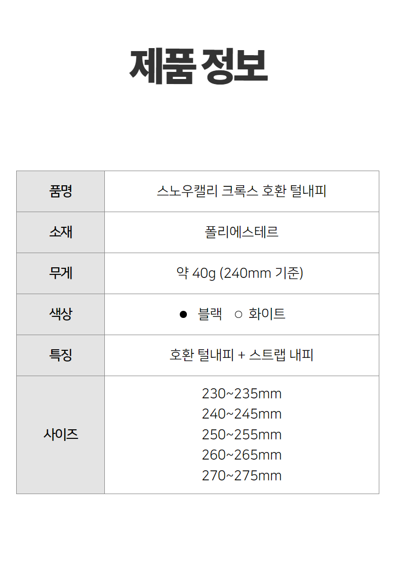 | 종류 | 상품 상세페이지 참조 | 소재 | 합성섬유(나일론/폴리에스터) |