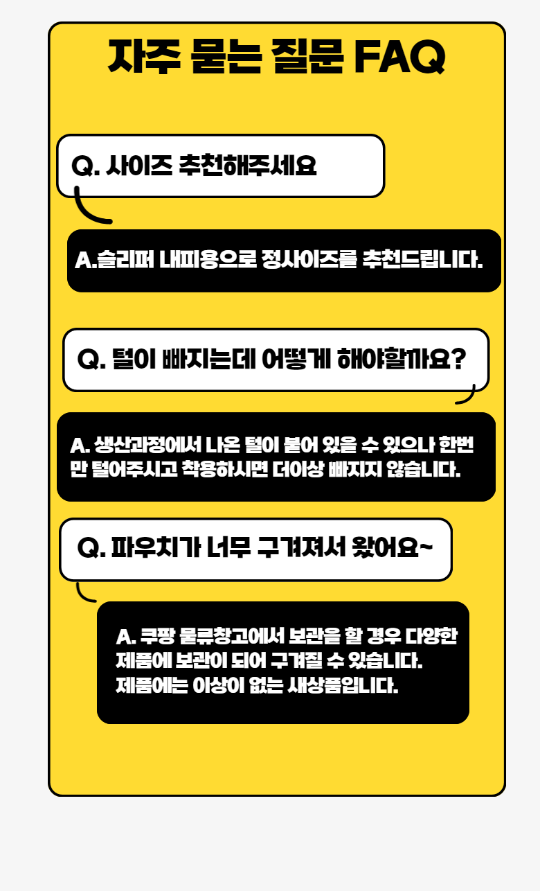 - ㆍ모니터 해상도의 차이로 인해 색상이나 이미지가 실제와 달라, 고객이 단순 변심으로 교환/반품을 무료로 요청하는 경우