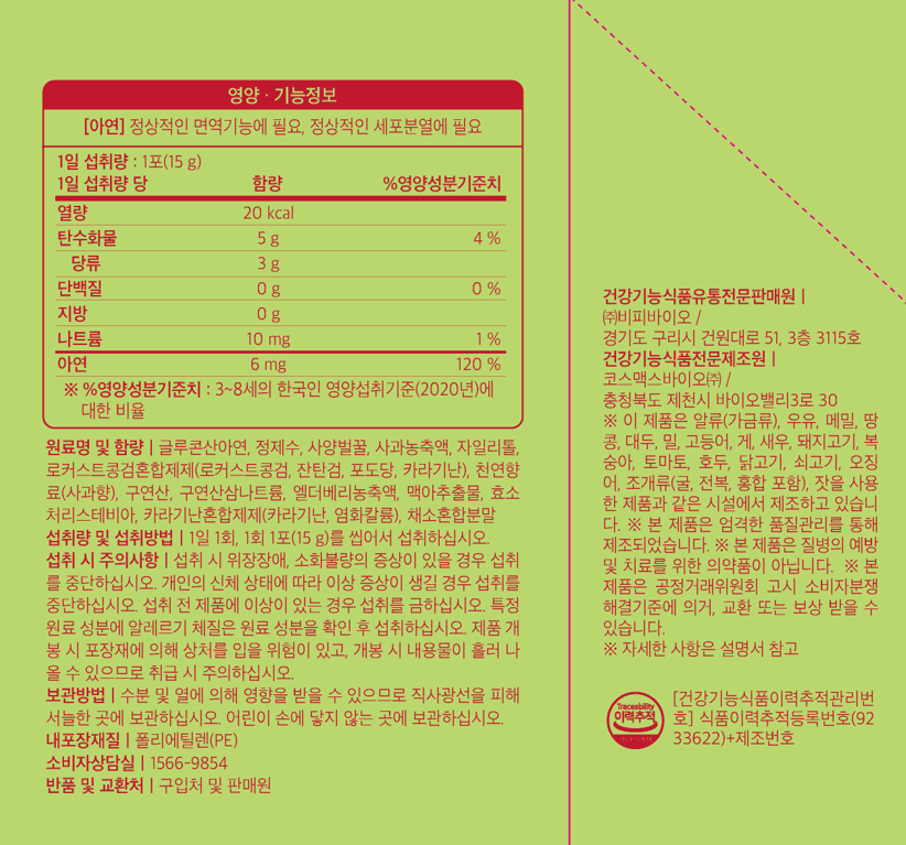 - 건강식품 사용대상: 유아/어린이