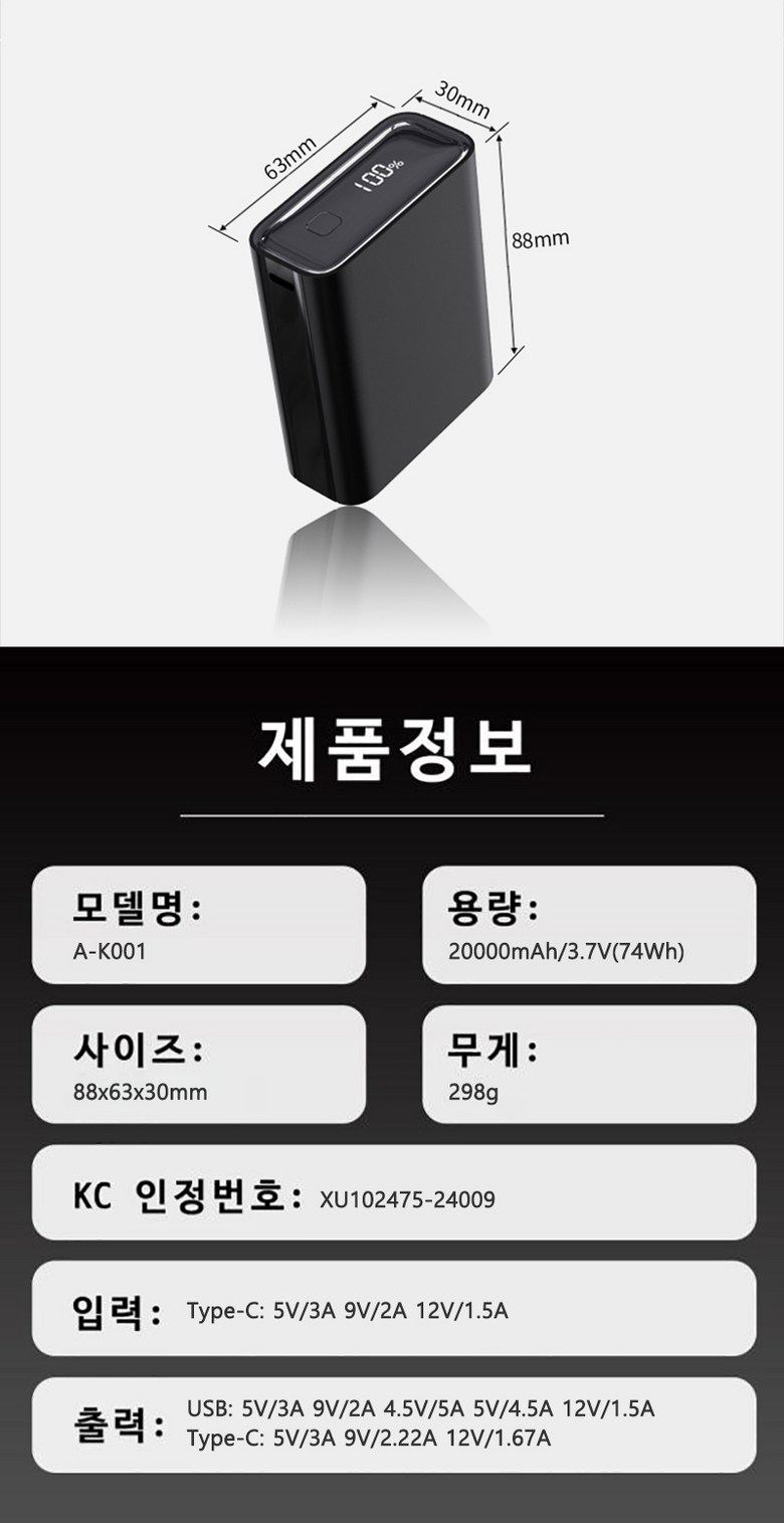 | 품명 및 모델명 | powerBank-22.5w-2 | KC 인증정보 | 상품 상세페이지 참조 |