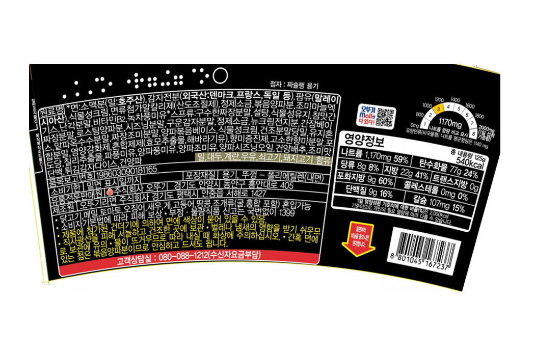 | 제품명 | 오뚜기 짜슐랭 | 식품의 유형 | 컨텐츠 참조 |
