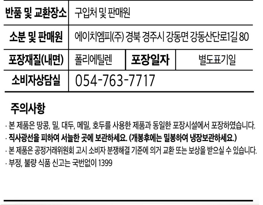 | 제조연월일, 소비기한 또는 품질유지기한 | 제조년월일 : 2026년 01월 23일 이후인 제조상품 | 세부 품목군별 표시사항 | 농수산물 : 유전자변형(해당 없음) / 지리적 표시사항(해당 없음) |