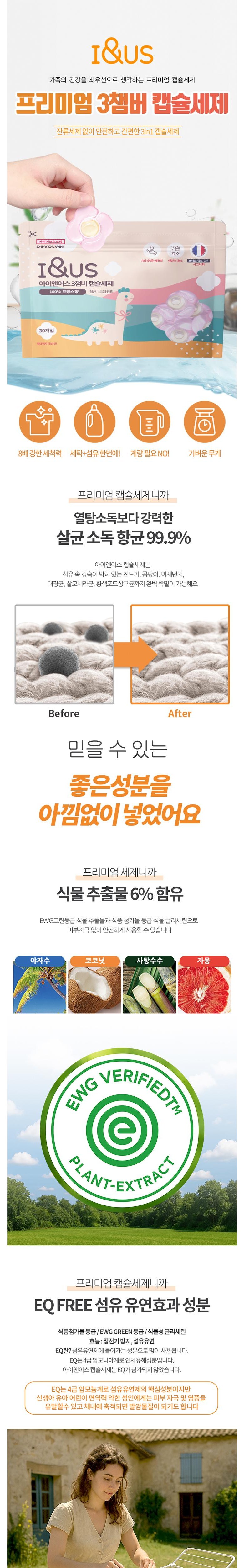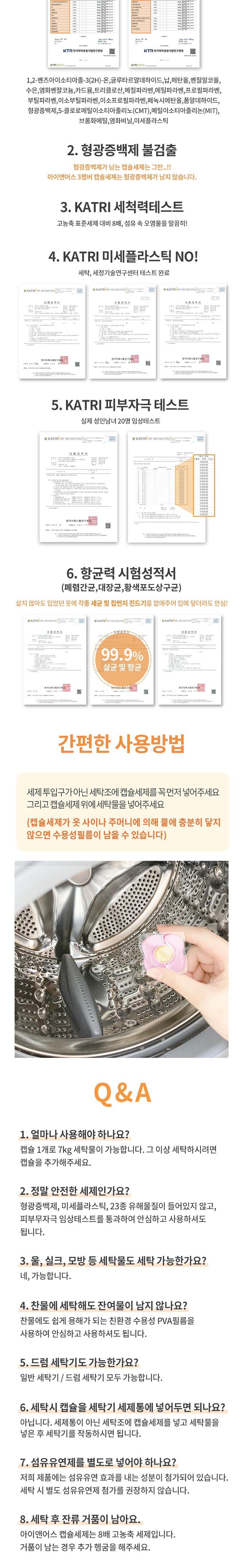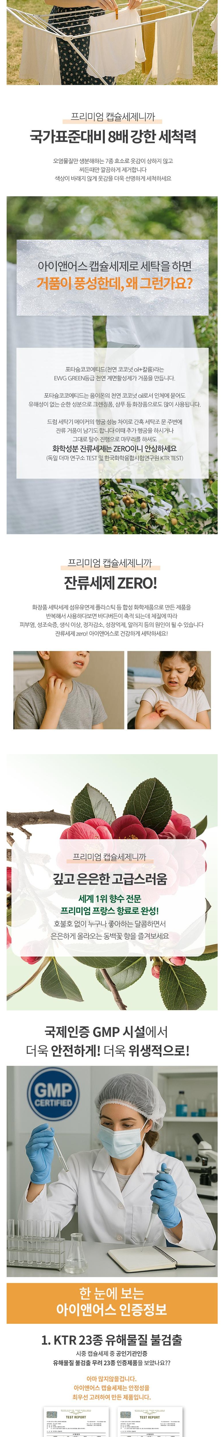 | 품목 및 제품명 | 세탁세제/아이앤어스 3챔버 캡슐세제 | 용도(표백제의 경우 계열을 함께표시) 및 제형 | 섬유 얼룩제거용,신발용,섬유용 및 비분사형-캡슐형 |