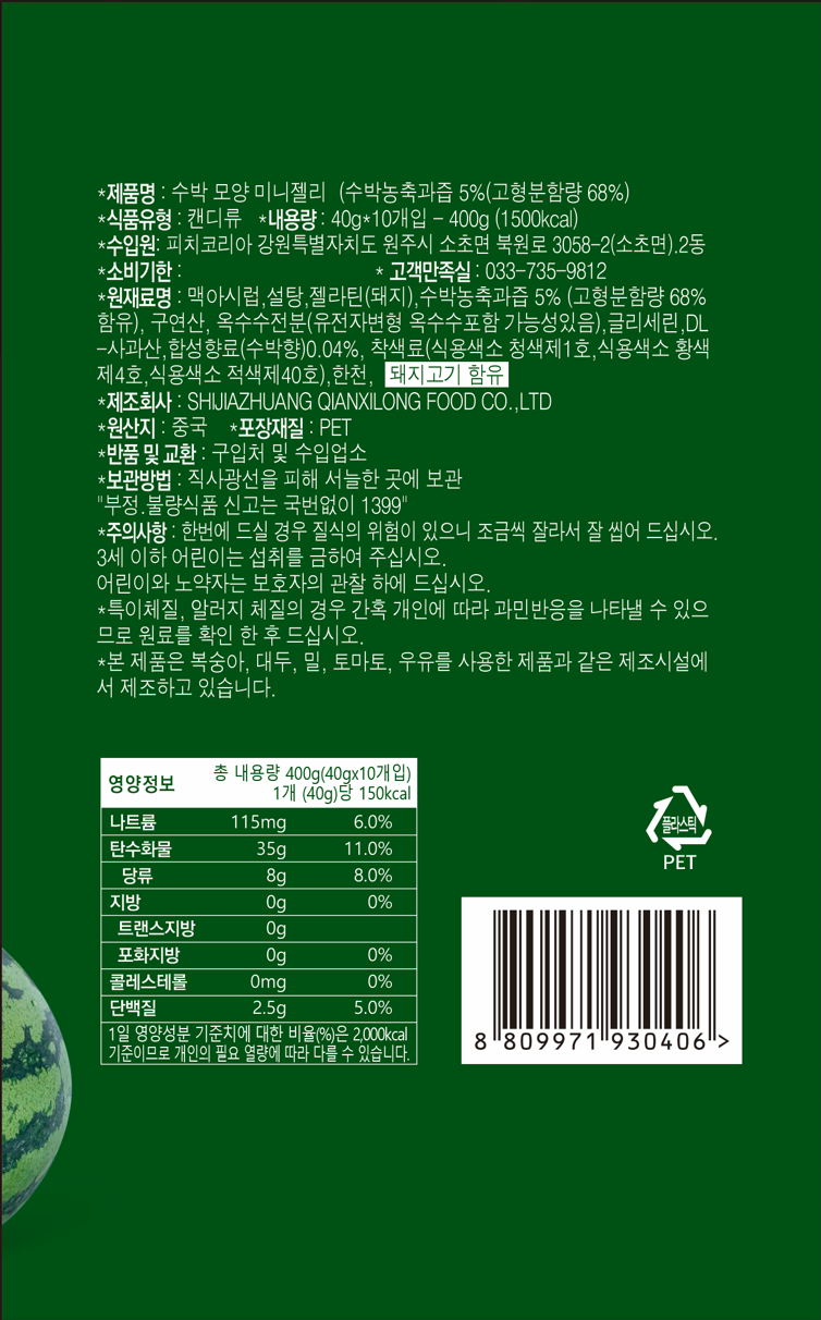 | 포장단위별 내용물의 용량(중량), 수량 | 40g x 20개 | 원재료명 및 함량 | 컨텐츠 참조 |