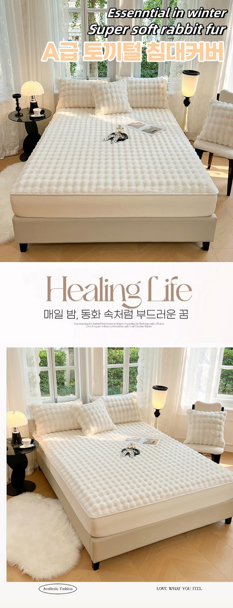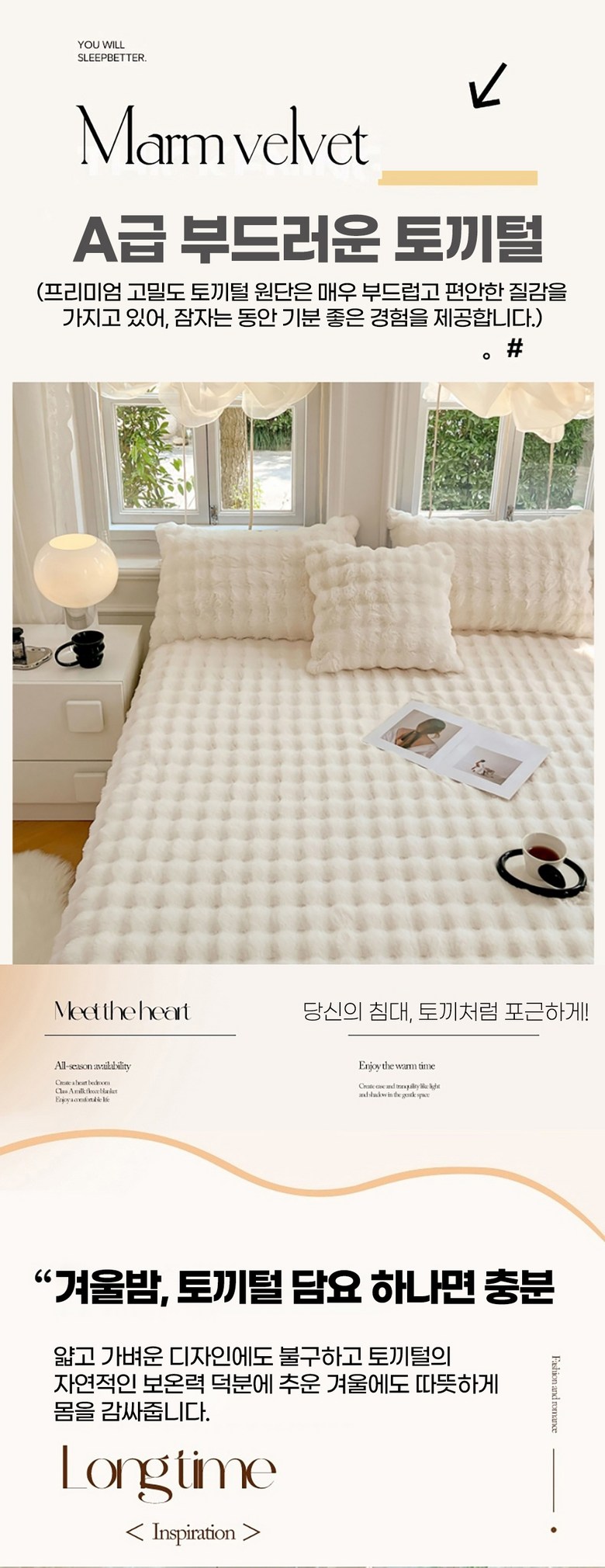 Cozy Aura 겨울 따뜻한 토끼털 침대커버 매트리스 커버 베개커버세트
