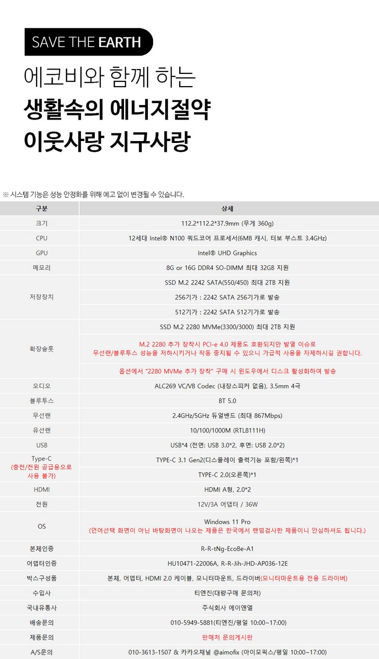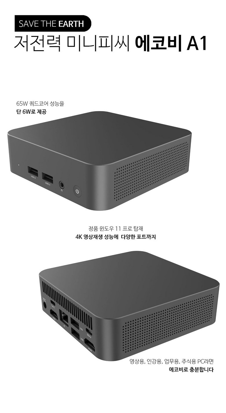| 품명 및 모델명 | 미니피씨 에코비A1 | KC 인증정보 | 방송통신기자재 적합성 평가 대상 : R-R-tNg-EcoBe-A1 |
