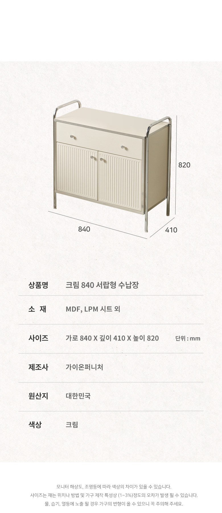 | 품명 | 크림 840 서랍형 수납장 | KC 인증정보 | 해당없음 |