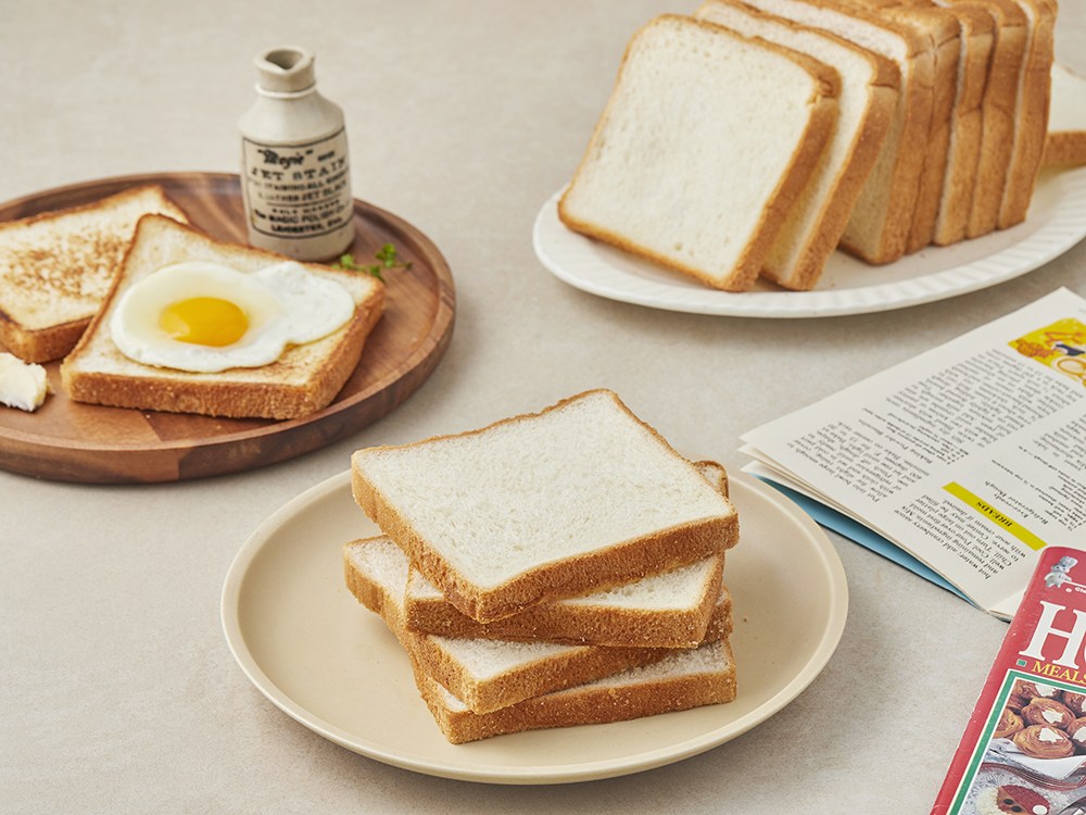 균일한 두께로 슬라이스 된 토스트식빵이에요. 쫄깃하고 부드러운 식감 사이로 고소한 풍미가 느껴지죠. 결대로 잘게 찢어 그대로 입에 쏙 넣어도 좋아요. 버터에 구워 토스트로 요리하면 겉은 바삭하고 속은 촉촉해진답니다. 계란 프라이를 곁들여 손쉽게 아침 식사로 즐겨보세요.