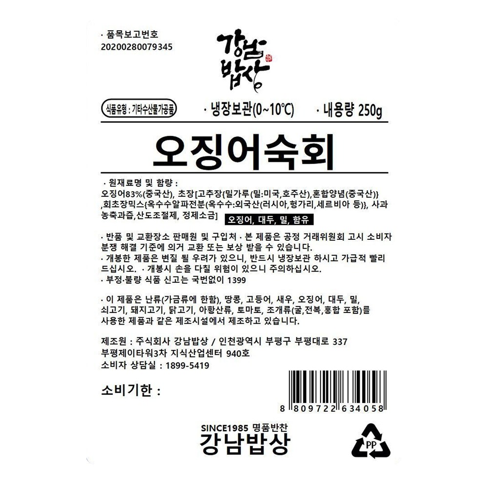 대치동 은마상가에서 시작해, 30년 이상의 반찬 전문 브랜드로 자리 잡은 강남밥상의 오징어숙회예요. 쫄깃한 식감의 오징어를 먹기 좋게 삶아내어, 탱글탱글한 식감을 선사하죠. 별도의 손질 없이도 즐기실 수 있으니 바쁜 일상 속에서도 근사한 식탁을 손쉽게 완성해 보세요. 동봉된 새콤달콤한 초장에 곁들이면 오징어 본연의 고소한 감칠맛을 끌어올릴 수 있답니다.