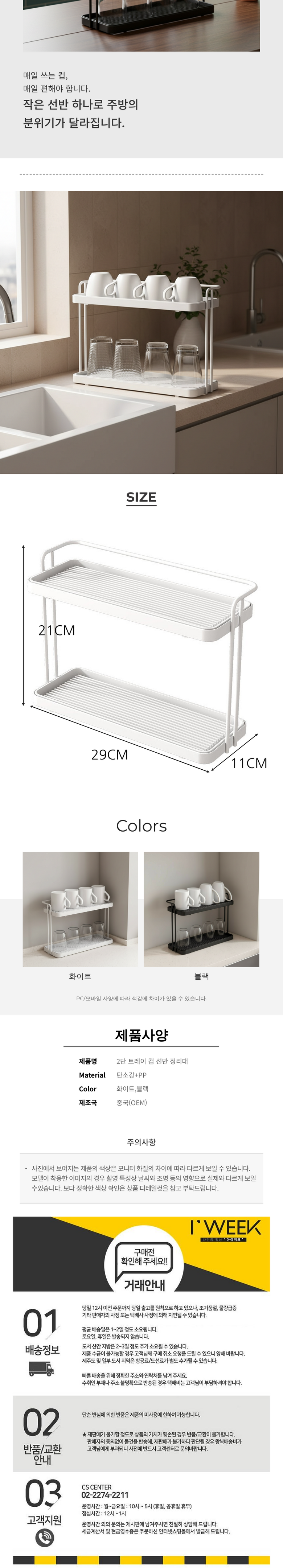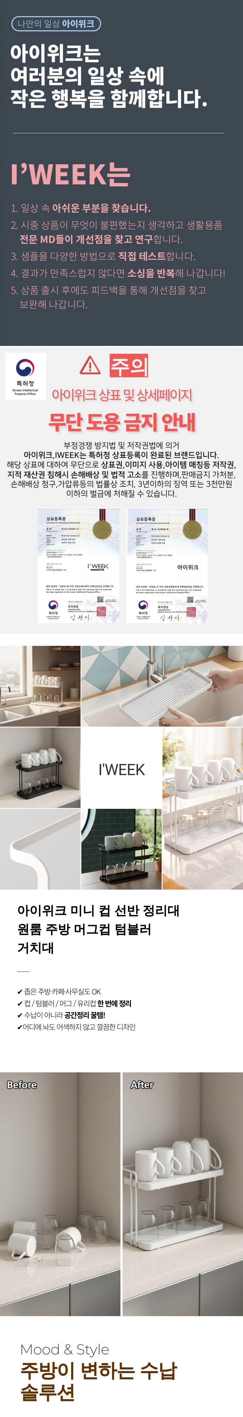 | 품명 및 모델명 | 아이위크 2단 컵 선반 거치대 머그컵 정리함 보관함 주방정리 | 인증/허가 사항 | 상품 상세페이지 참조 |