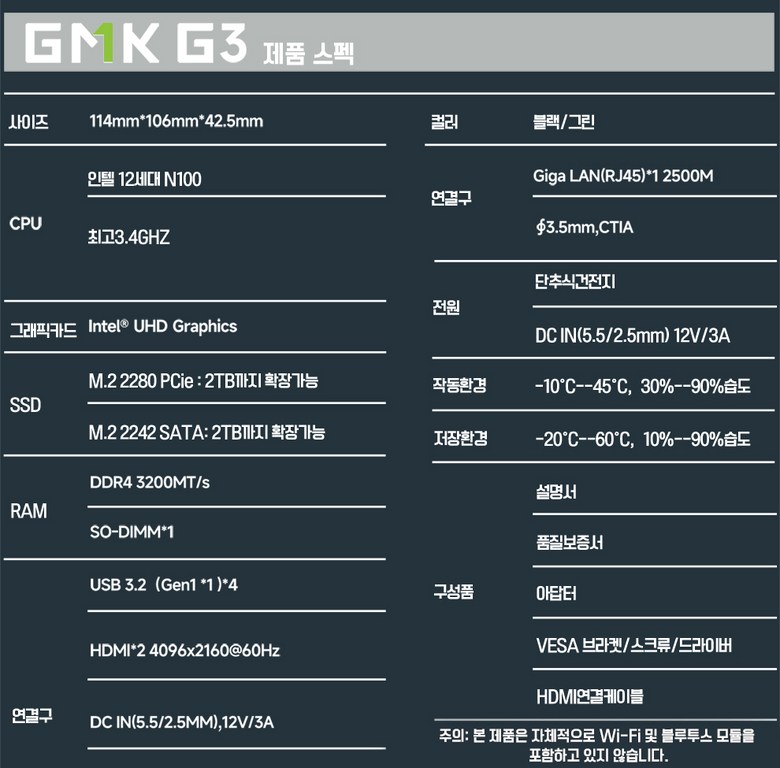 | 출시년월 | 2024년 8월 | 제조자(수입자) | GMKtec |