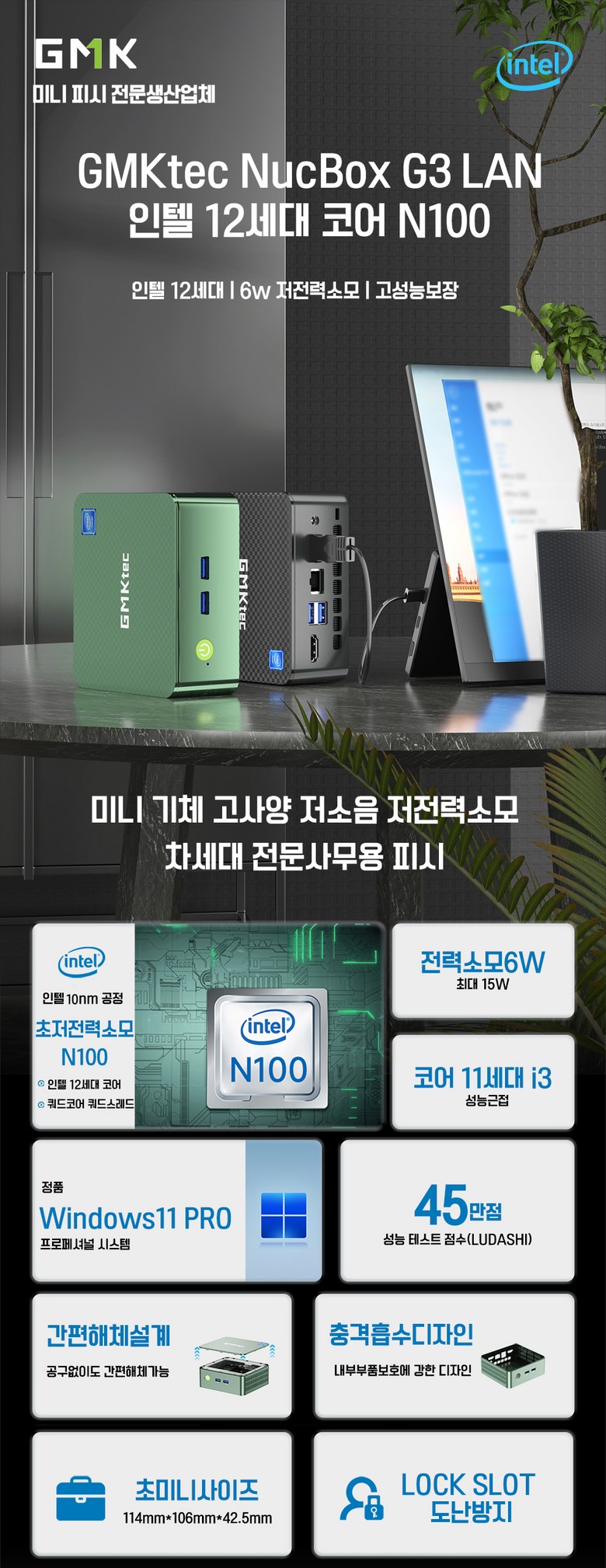 | 품명 및 모델명 | GMKtec NucBox G3 LAN | KC 인증정보 | 상품 상세페이지 참조 |