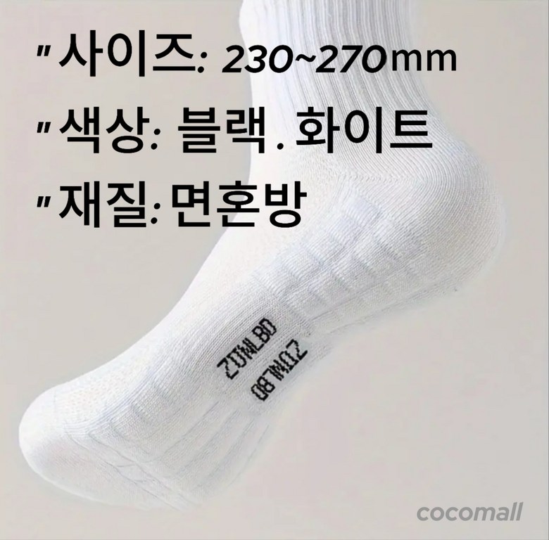 | 종류 | 두꺼운 엠보 쿠션 양말 10켤레 | 소재 | 면혼방 |