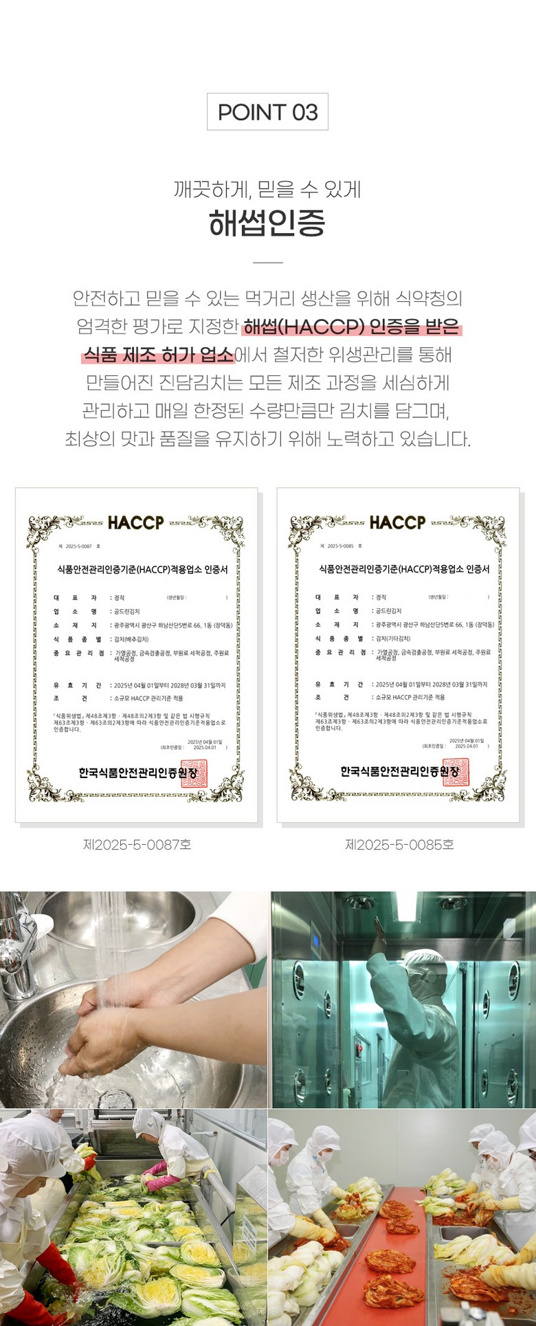 | 생산자 및 소재지 | 진담김치 협력제조사 | 제조연월일, 소비기한 또는 품질유지기한 | 별도표기/제조일로부터 80일 |