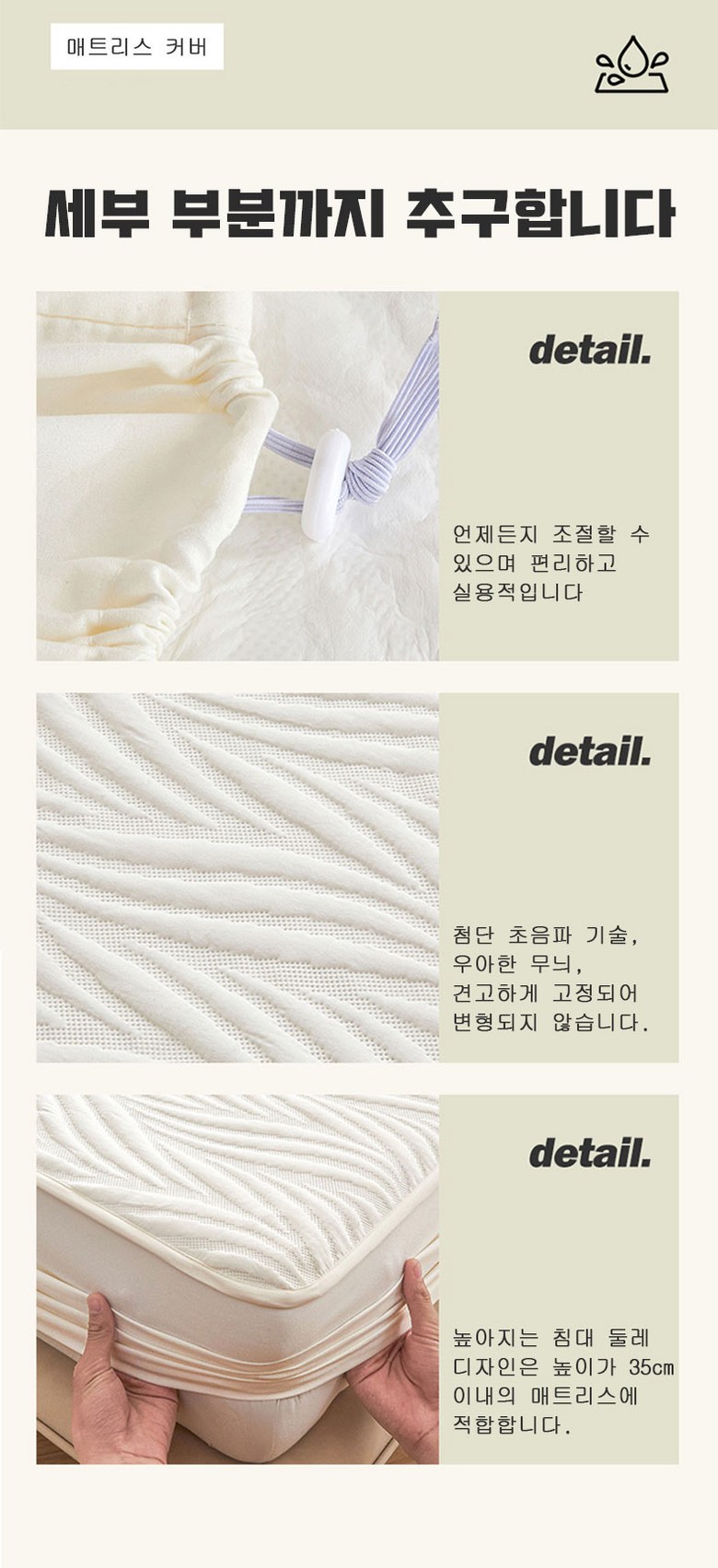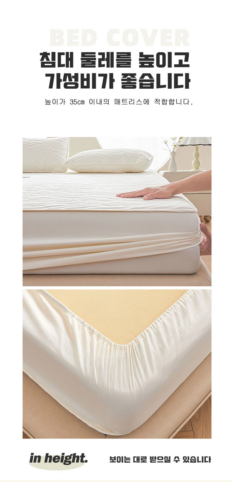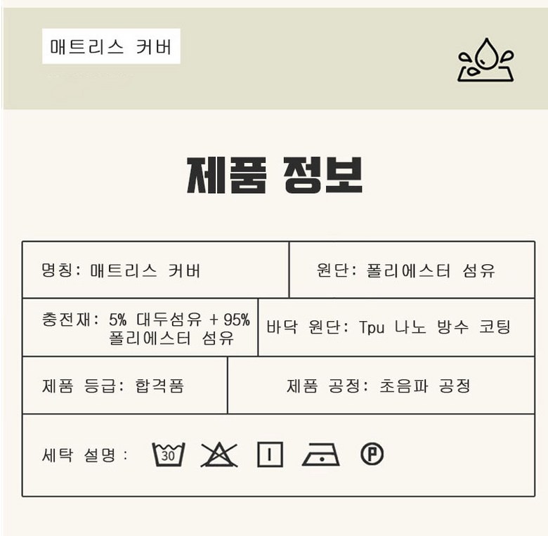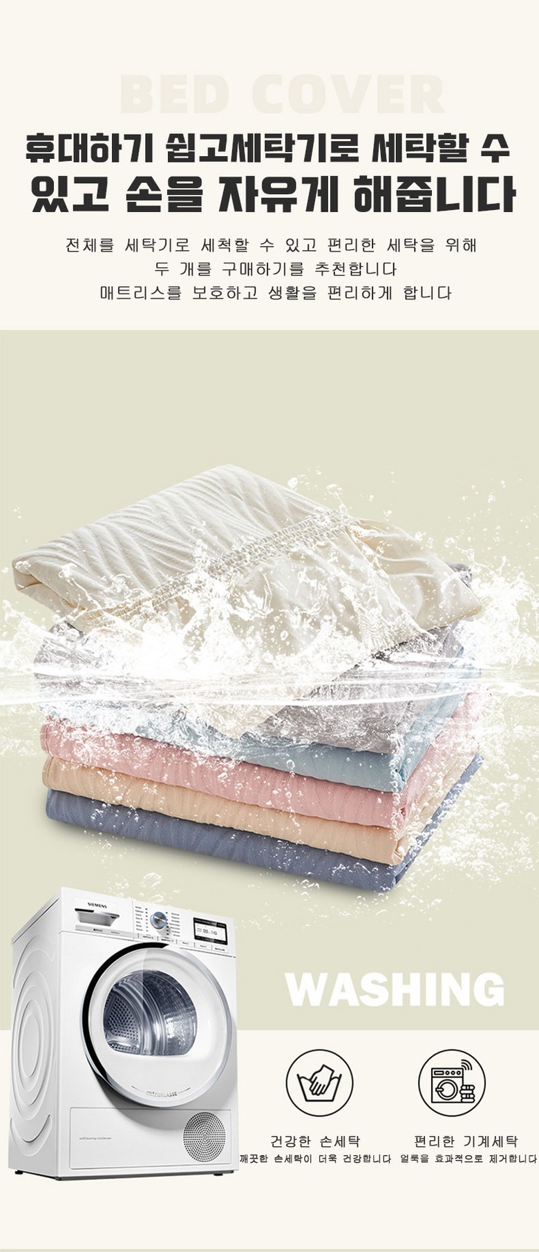 | 치수 | S(100*200CM),SS(110*200CM),Q(150*200CM),K(160*200CM) | 제품구성 | 매트리스 커버 |