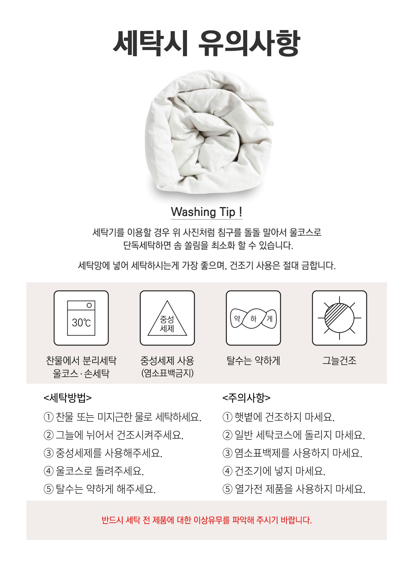 - 세탁방법: 세탁기사용가능
