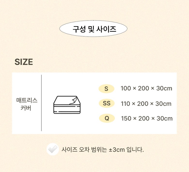 | 치수 | 상세페이지 참조 | 제품구성 | 매트리스커버 1장 |