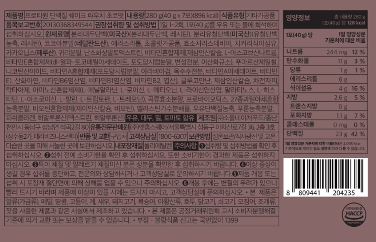 - 단백질 맛: 초코