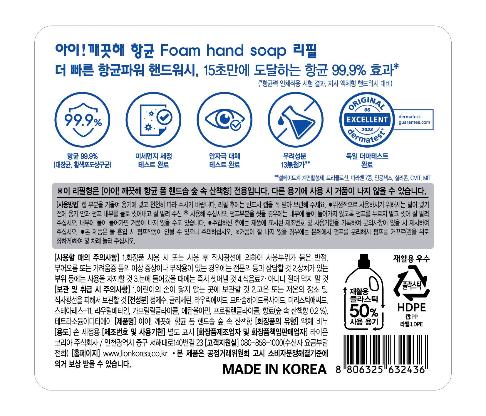 | 화장품제조업자, 화장품책임판매업자 및 맞춤형화장품판매업자 | 라이온코리아 주식회사 | 제조국 | 대한민국 |