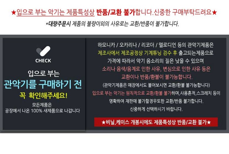 - ㆍ교환/반품에 관한 일반적인 사항은 판매자가 제시사항보다 관계법령이 우선합니다.
