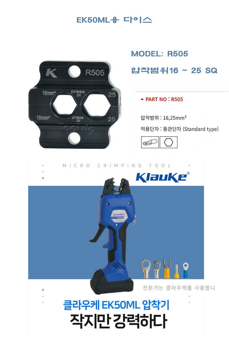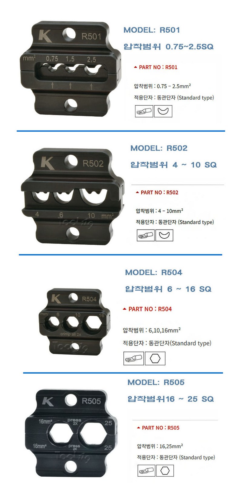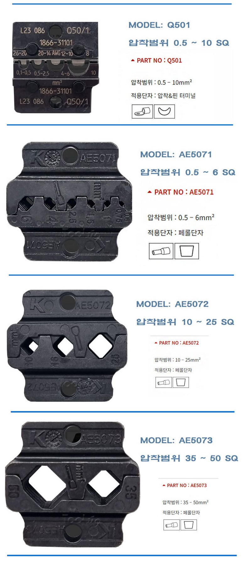 *압착기 EK50ML에 체결하여 단자압착하는 다이스.