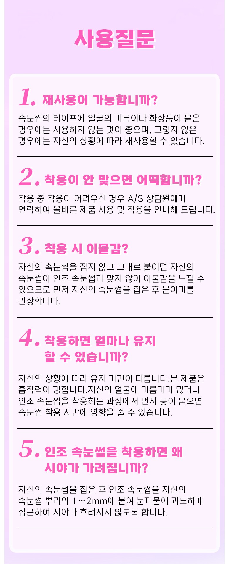 | 품명 및 모델명 | JUELREOU 풀이 필요 없는 인조 속눈썹/B7693 | 인증/허가 사항 | KC 생활용품 공급자적합성/인증번호:SRAA24-00022821 |