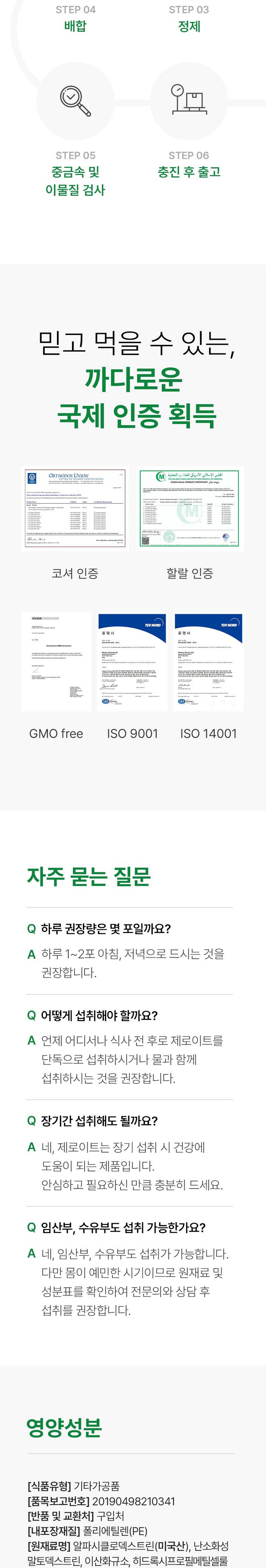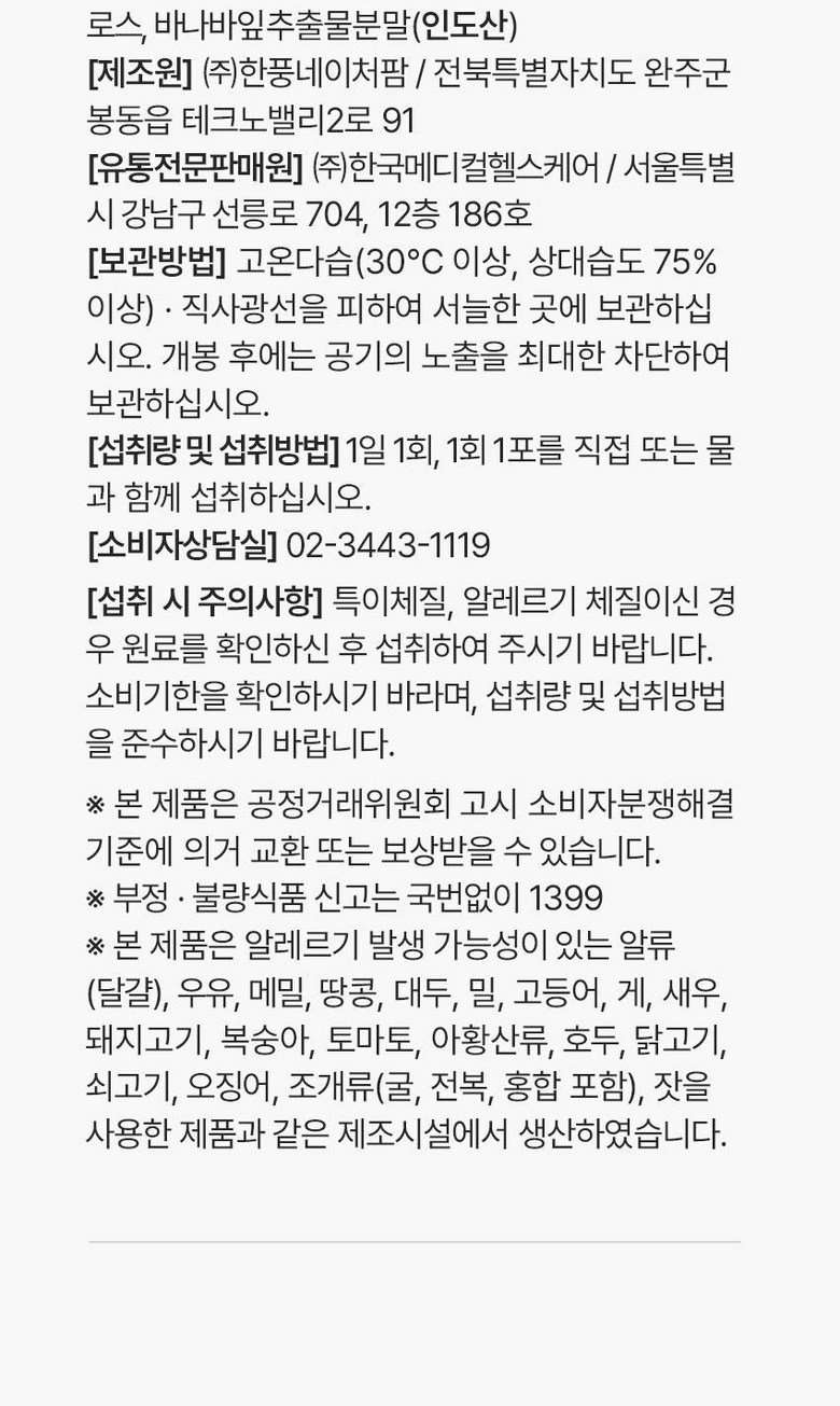 | 제조연월일, 소비기한 또는 품질유지기한 | 상품 상세페이지 참조 | 세부 품목군별 표시사항 | 상품 상세페이지 참조 |