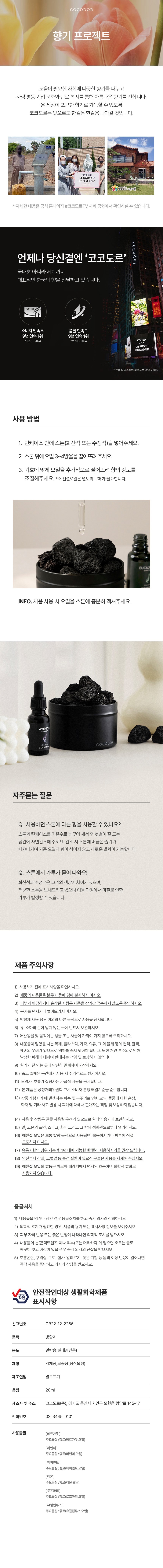 | 효과,효능 (승인대상 제품에 한함) | 해당없음 | 수입자(수입제품에 한함), 제조국 및 제조사 | 방향제: 컨텐츠 참조 | 스톤, 틴케이스: 중국, 업체미제공 / 코코도르(주) |