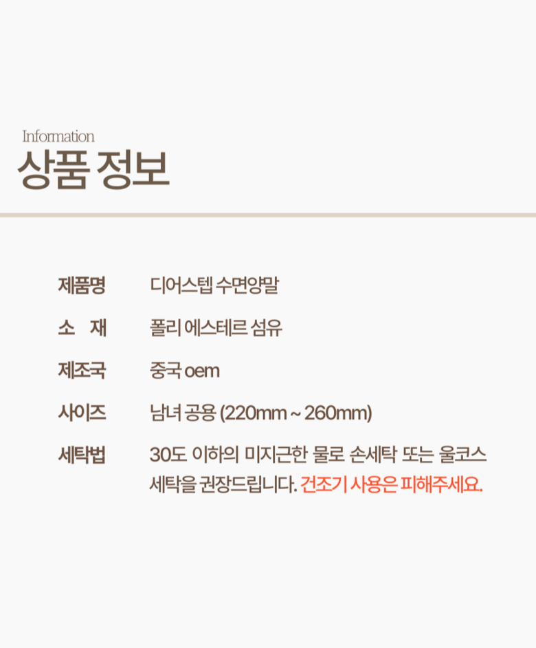 | 종류 | 디어스텝 수면 양말 | 소재 | 폴리에스터 |