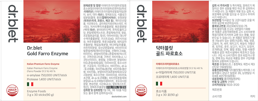 | 제품명 | 닥터블릿 골드 파로효소 | 식품의 유형 | 효소식품 |