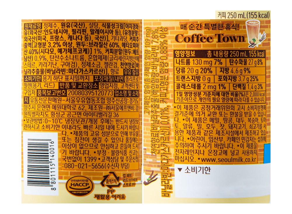 | 제품명 | 서울우유 커피타운 화이트 바닐라 | 식품의 유형 | 컨텐츠 참조 |