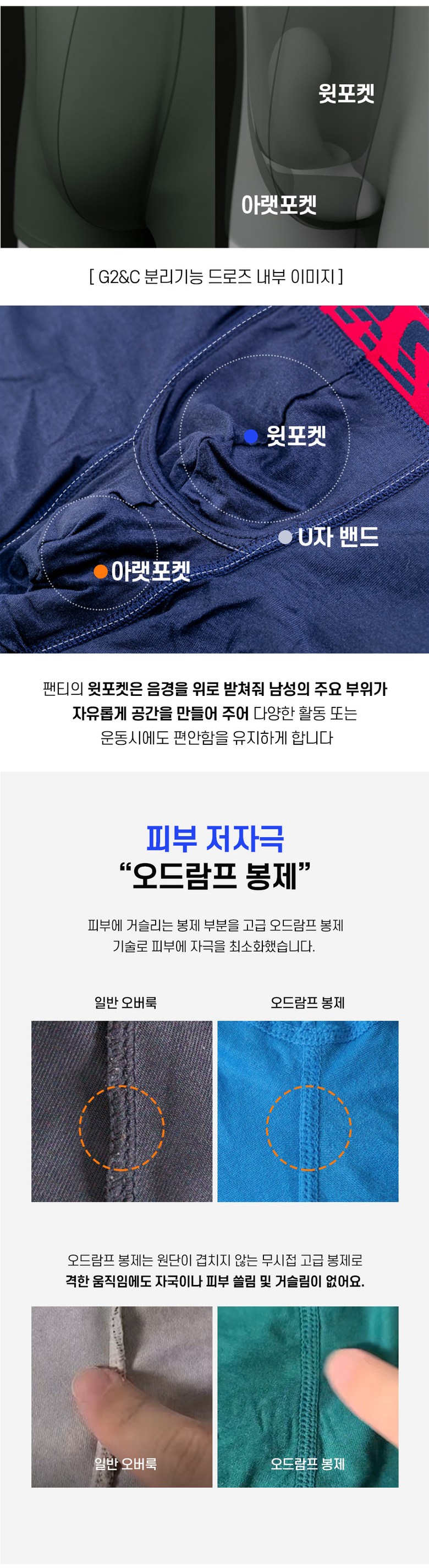 | 품명 및 모델명 | G2&C 지투앤씨 투포켓 드로즈 3종세트 분리 기능성 남자팬티 | 인증/허가 사항 | 상품 상세페이지 참조 |
