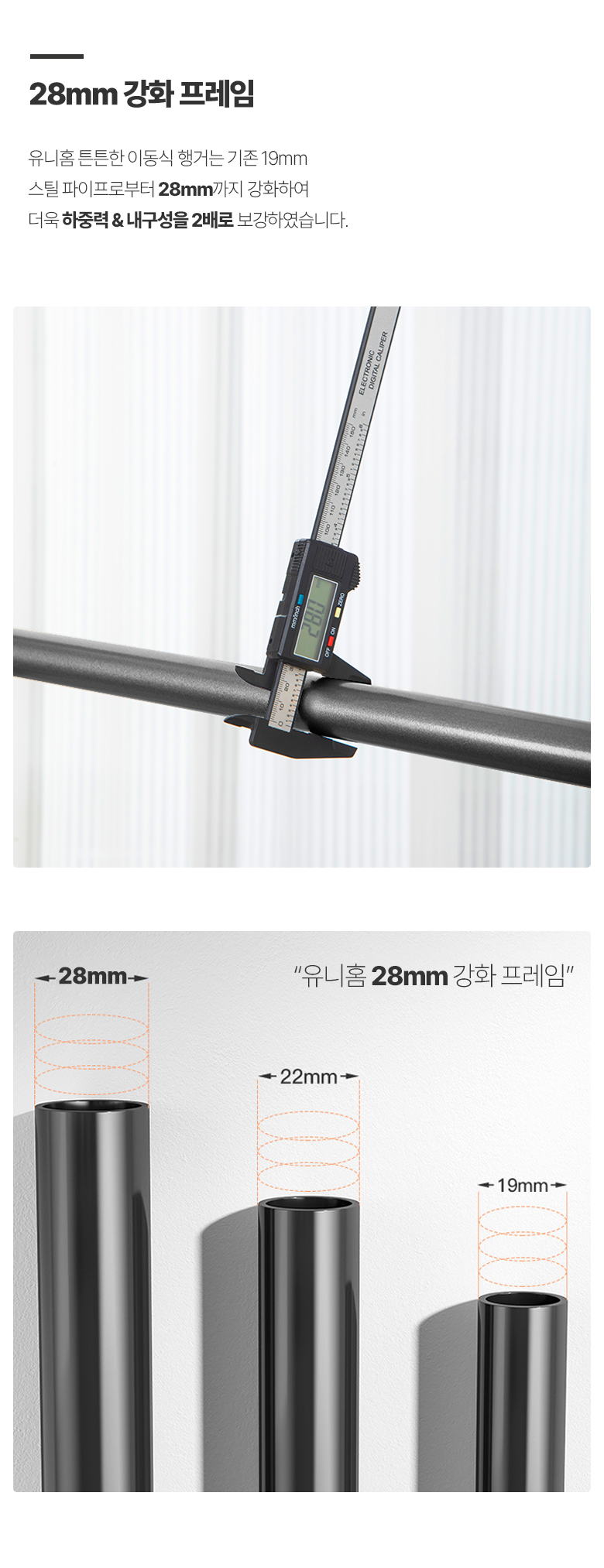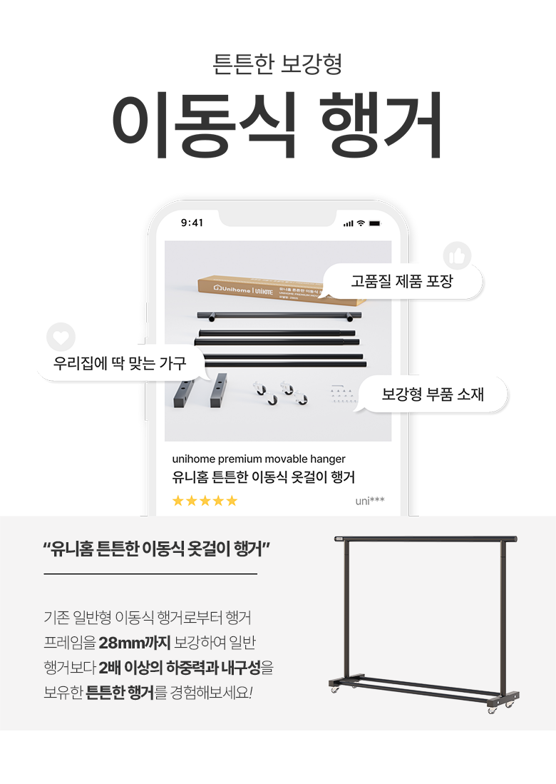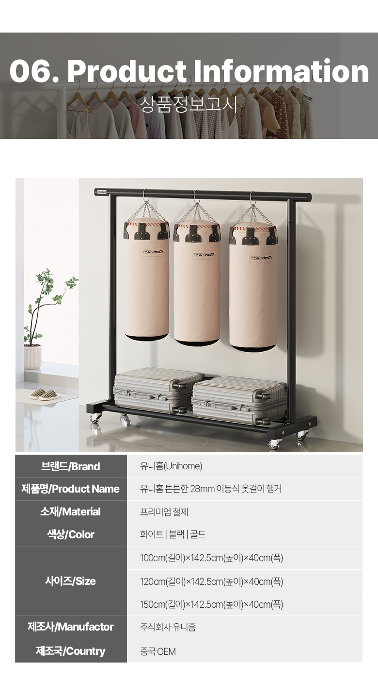 | 품명 및 모델명 | 유니홈 28mm 튼튼한 이동식 옷걸이 행거 | 인증/허가 사항 | 해당사항 없음 |