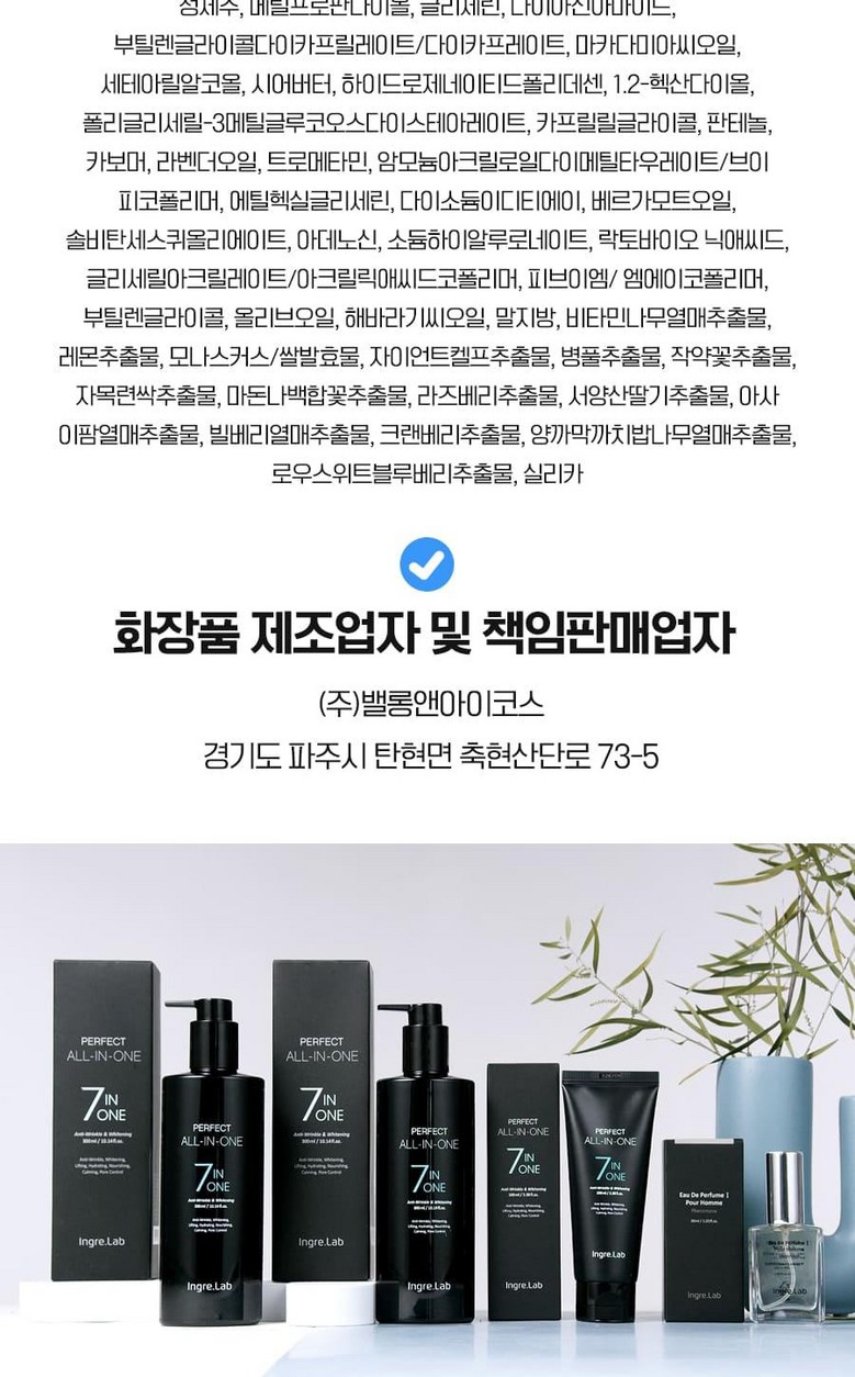 | 화장품제조업자, 화장품책임판매업자 및 맞춤형화장품판매업자 | Bellon&I.COS / ㈜밸롱앤아이코스 | 제조국 | 대한민국 |