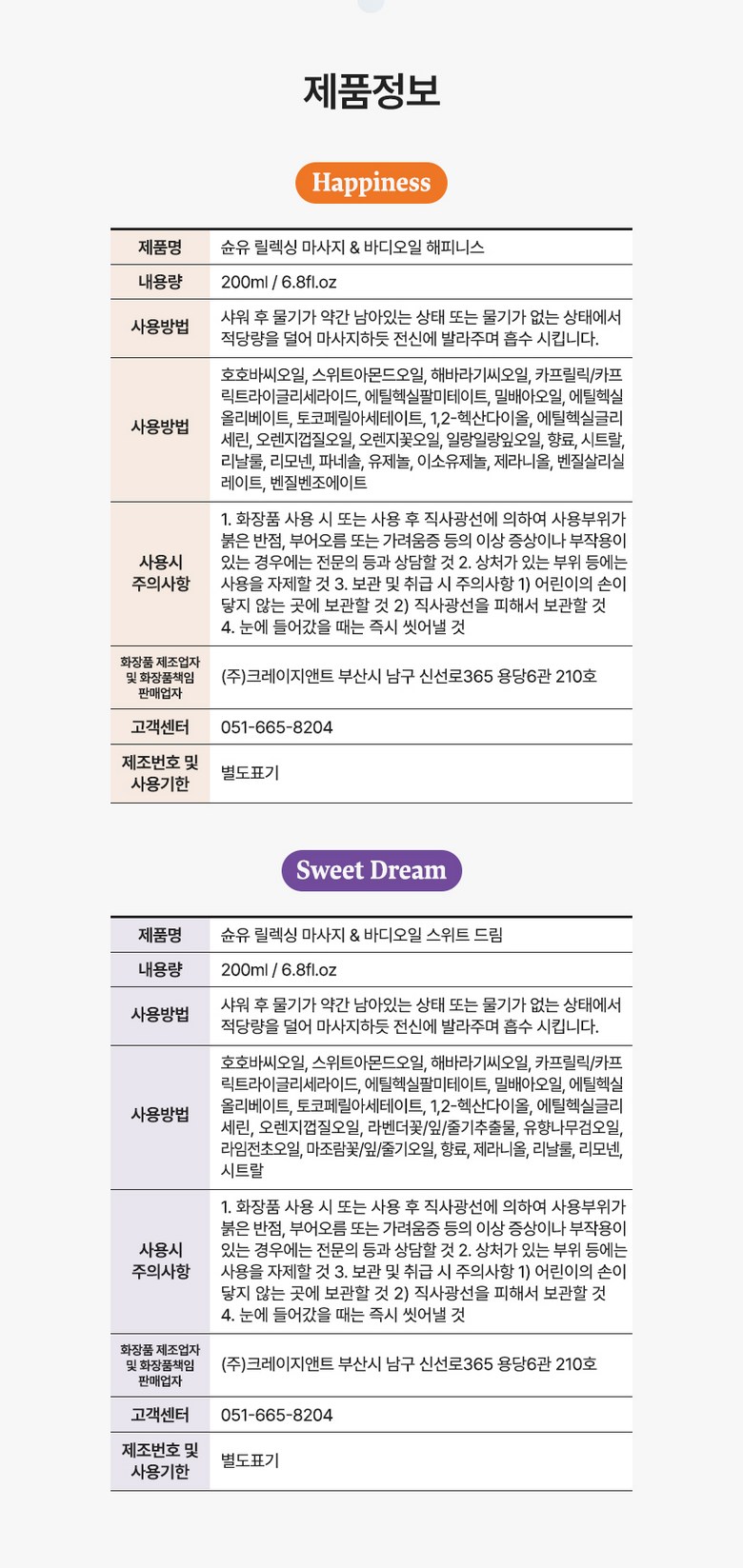 | 화장품제조업자, 화장품책임판매업자 및 맞춤형화장품판매업자 | 제조업자:크레이지앤트 / 책임판매업자:크레이지앤트 | 제조국 | 제조국:대한민국 |