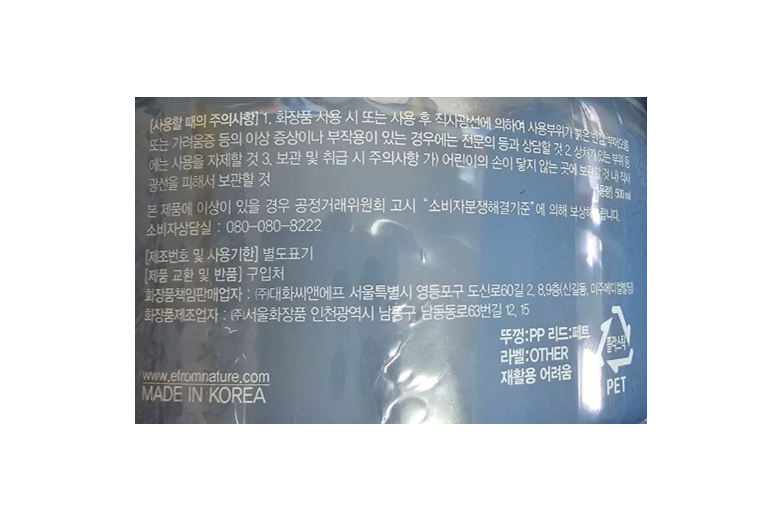 | 화장품제조업자, 화장품책임판매업자 및 맞춤형화장품판매업자 | 상품 상세페이지 참조 | 제조국 | 상품 상세페이지 참조 |