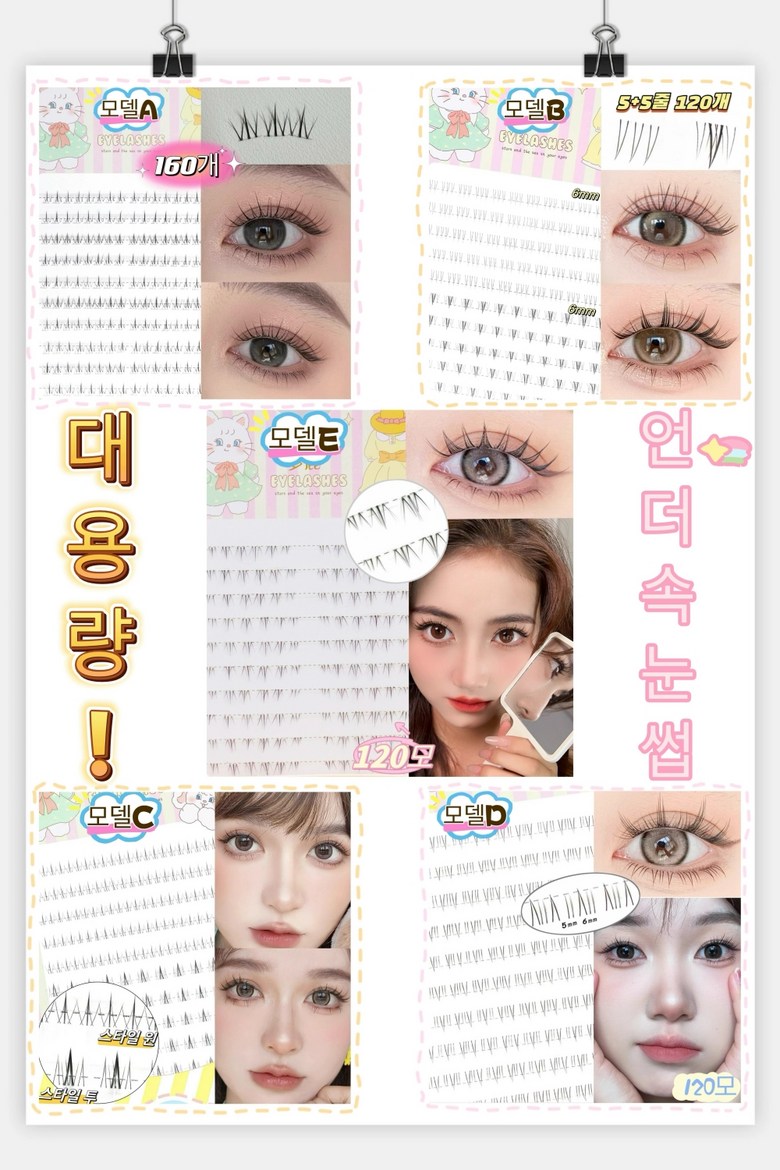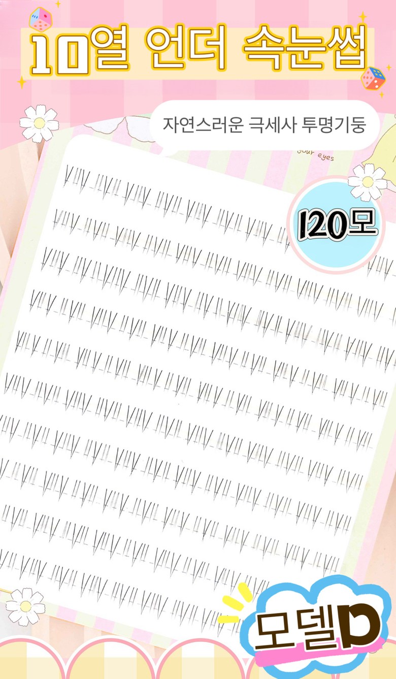 Atopos 언더 인조 속눈썹 자연스러운 가닥 아랫속눈썹 연장 아이래쉬 160모 대용량 투명 라인, D, 1개
