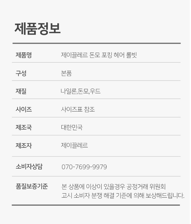 | 품명 및 모델명 | 제이끌레르 헤어 롤빗 | 인증/허가 사항 | 상세설명참조 |