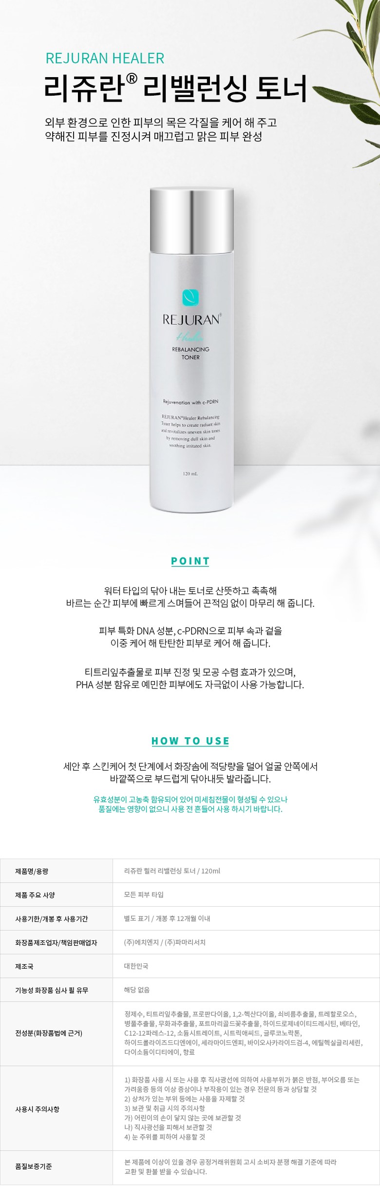 리쥬란 리밸런싱 토너 120ml 제품의 용기의 디자인이