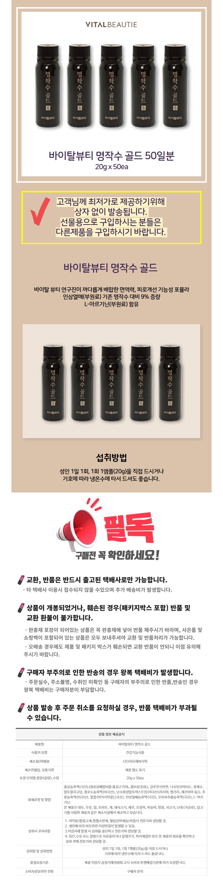 | 소비기한 및 보관방법 | 상품 상세페이지 참조 | 포장단위별 내용물의 용량(중량), 수량 | 상품 상세페이지 참조 |