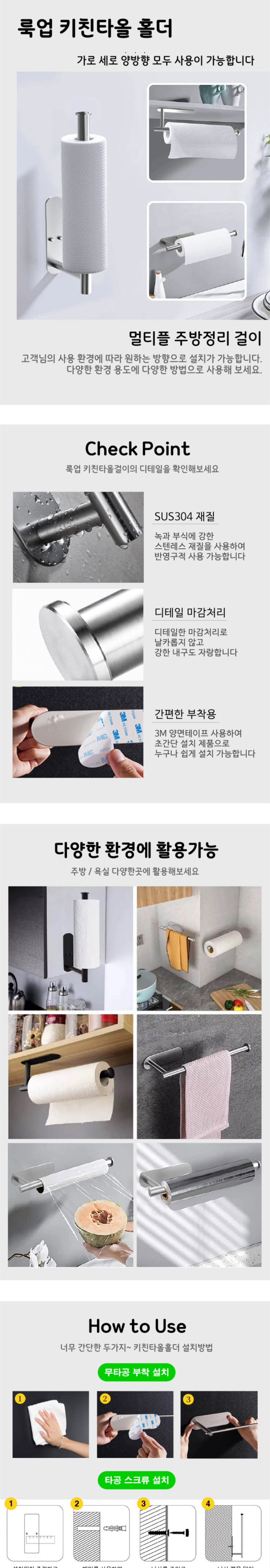 룩업 무타공 키친타올 거치대 스테인레스 다용도걸이